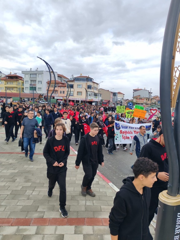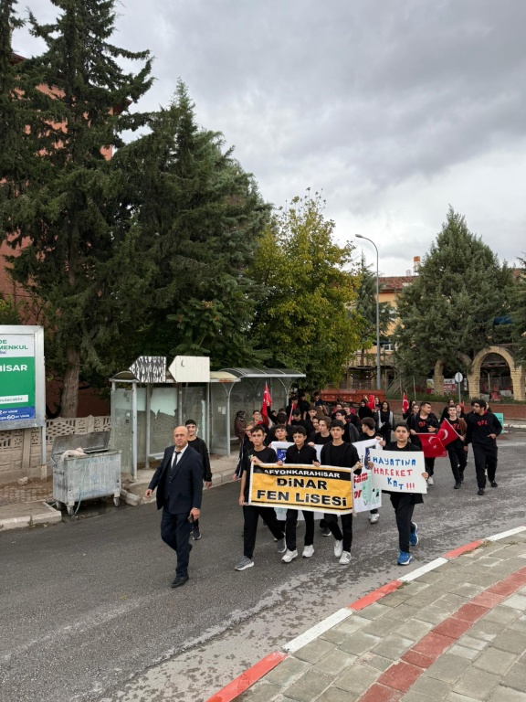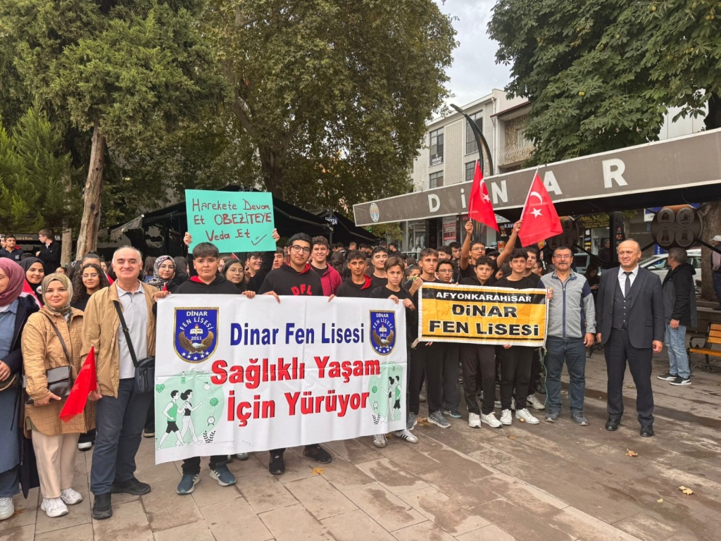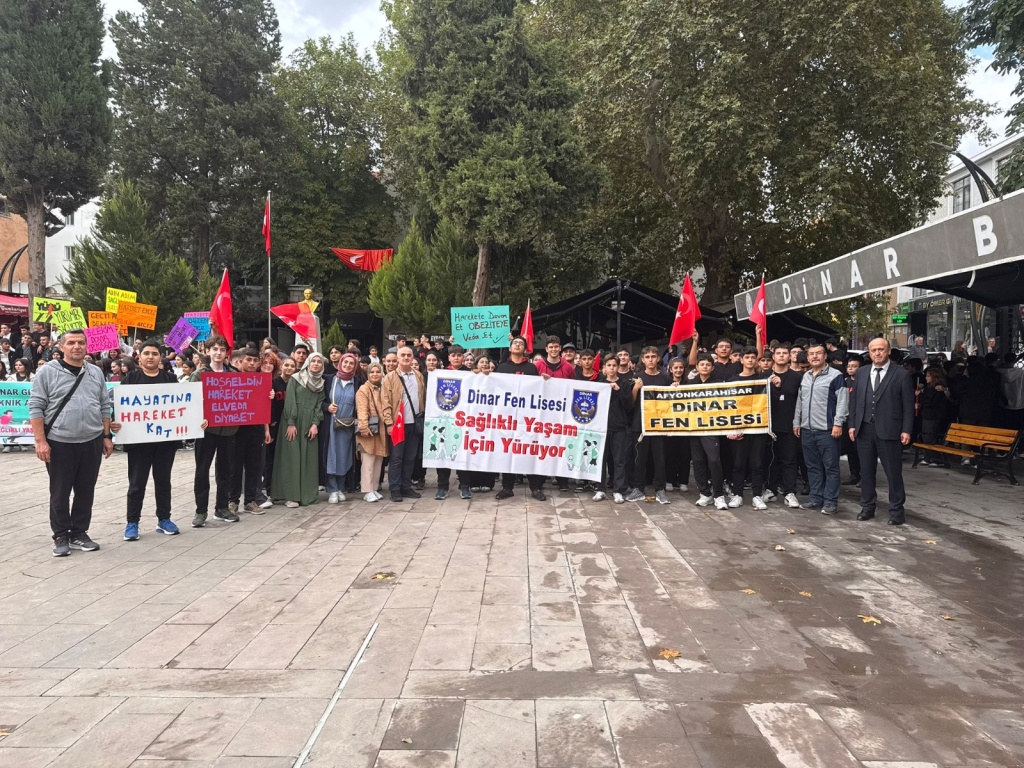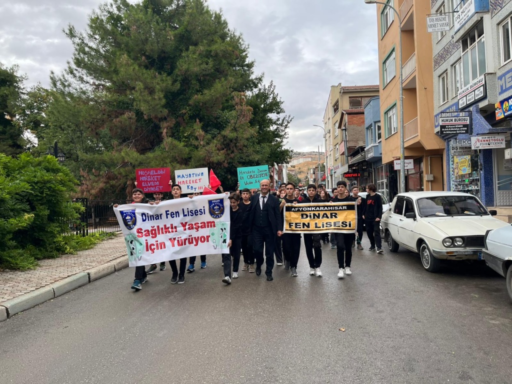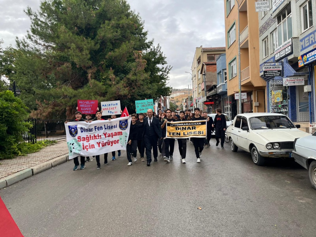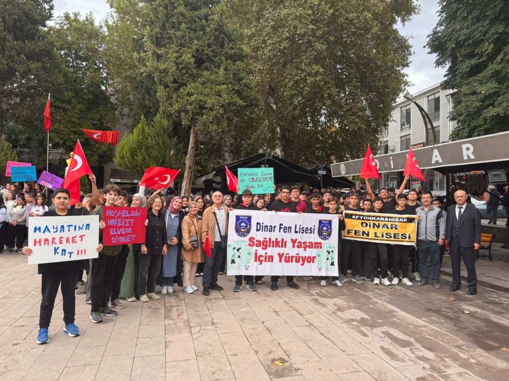 Dinar Fen Lisesi olarak Okulumda Sağlıklı Besleniyorum Projesi kapsamında 3-4 Ekim Dünya Yürüyüş Günü ile ilgili 3 Ekim 2025 Cuma günü ilçe genelinde öğrencilerimizin, öğretmenlerimizin, ilçemizdeki diğer okulların öğrenci ve öğretmenleri, İlçe Gençlik ve Spor Müdürü Doğan ÇAKIR, İlçe Milli Eğitim Müdürü Ufuk TAŞBAŞ ve Şube Müdürleri Mehmet Ali TUZCU ve Hakkı BOZAN’ın da katılımı ile yürüyüş etkinliği gerçekleştirdik.