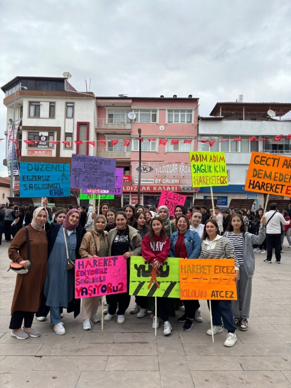 3-4 Ekim Dünya Yürüyüş Günü dolayısıyla düzenlediğimiz etkinlikte , ‘’ Her Gün 10.000 Adım’’ sloganıyla yola çıktık. 700 kişinin katılımıyla gerçekleşen yürüyüşte, obeziteyle mücadele, fiziksel aktivitenin ruh ve beden sağlığına olan olumlu etkilerine dikkat çektik. İlçe genelindeki vatandaşlara öğrencilerimiz tarafından günün anlam ve önemine ilişkin çeşitli broşürler dağıtılarak farkındalık yaratılmıştır. Unutmayalım, yürümek en değerli ilaçtır!