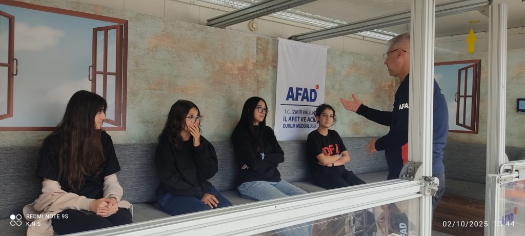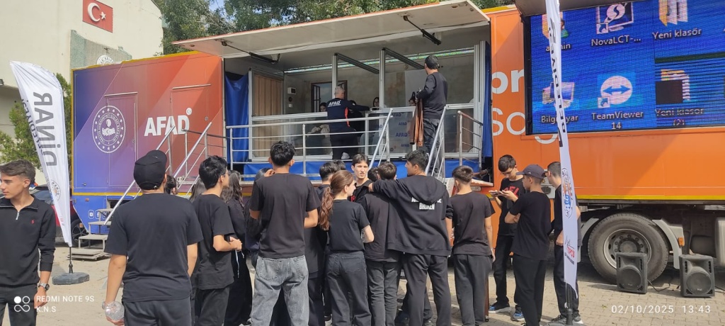 AFAD tarafından ilçemize getirilen Deprem Simülasyon Tırı okulumuz öğretmen ve öğrencileri tarafından ziyaret edilmiştir. Etkinlik sırasında olası deprem anı canlandırılarak, deprem sırasında nasıl davranmaları gerektiği AFAD görevlileri tarafından uygulamalı bir şekilde anlatılmıştır. Öğretmen ve öğrencilerimiz deprem anı ve sonrasında neler yapmaları gerektiği konusunda bilgilenmiş ve deprem konusunda hassasiyet ve farkındalık geliştirmişlerdir.