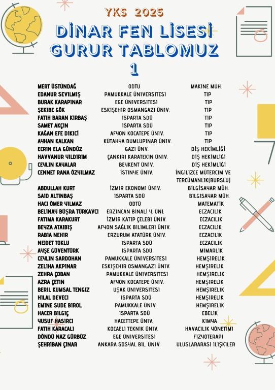 Dinar Fen Lisesi YKS 2025 Gurur Tablomuz